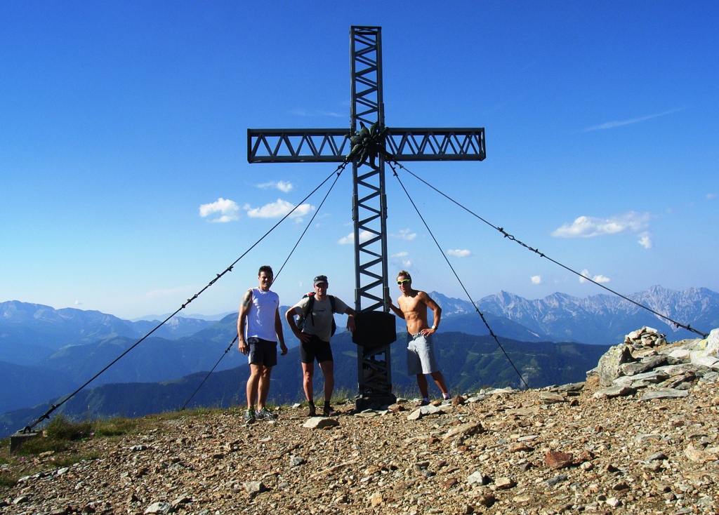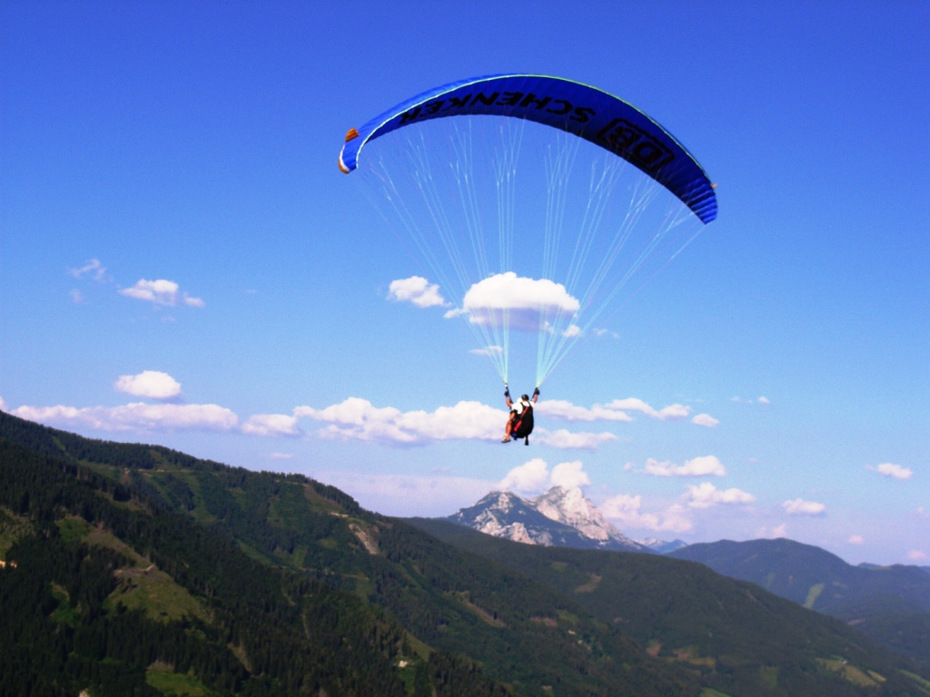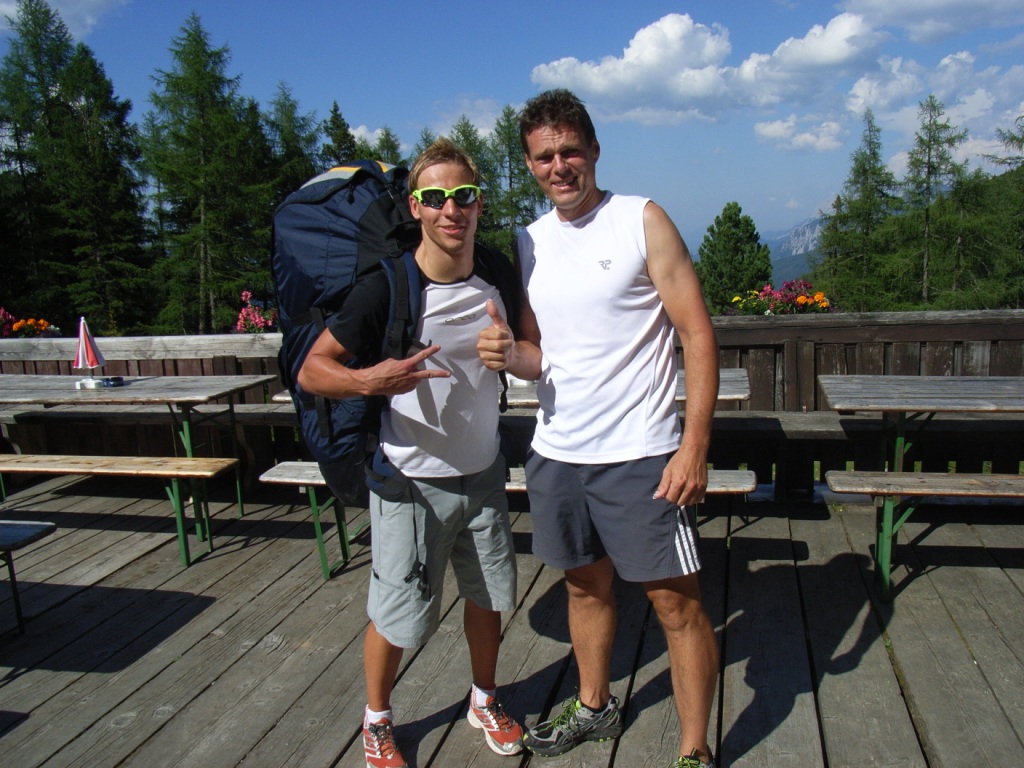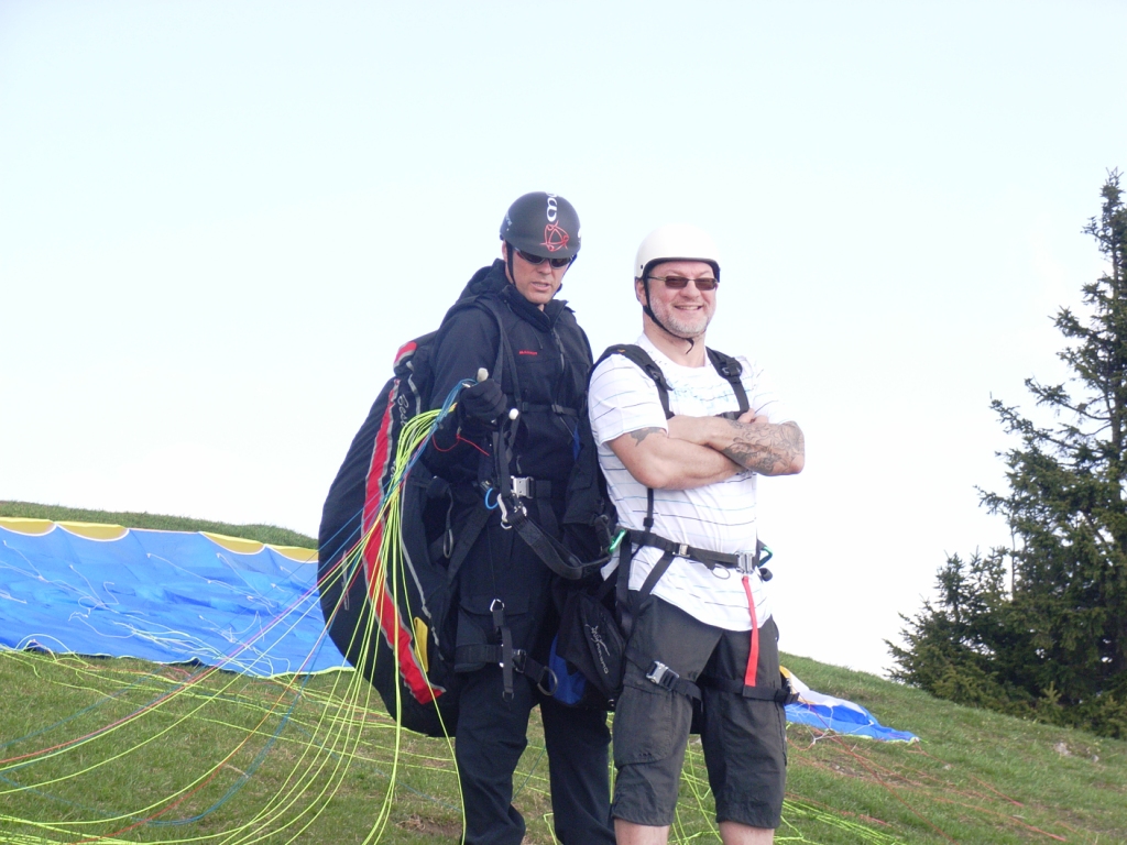 2 Fotos oben, 2 Fotos unten: Am 22.07.2010 bin ich mit dem 3-fachen Staatsmeister Manuel Sölkner (Rottenmann) vom Stein am Mandl geflogen. Zuerst ist er mit dem Bike dem Berg rauf gefahren, dann schleppte er den Tandemschirm bis zum Startplatz auf 2043m, um nach unserem Panoramaflug von ca. 45min schnell noch das Schwimmtraining zu absolvieren, damit beim abschließenden Lauftraining etwas Energie verbraucht ist?!? Ist dieser Mann ein Mensch oder eine Maschine? Egal, es war für ihn etwas besonderes. Nachzulesen im Gästebuch!