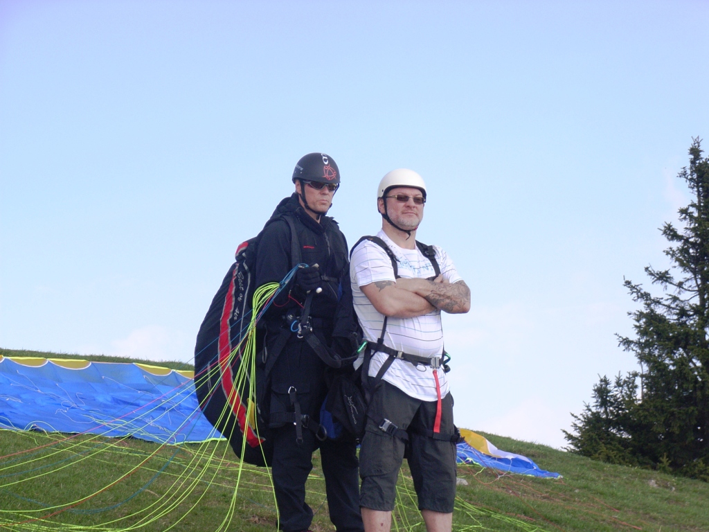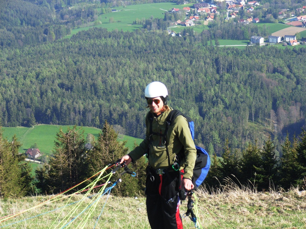 Diese Fotos wurden am 01.05.2010 am Süd-Ost-Startplatz des Schöckl´s aufgenommen. Dieser mutige Mann der einen Tandemflug mit mir gewagt hat, ist kein anderer als unser Carlos vom Laufhaus 61 in Graz. |