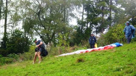 Jeder Schirm hat einen Gewichtsbereich in dem er geflogen werden darf. Die Rennleitung akzeptierte eine Überladung von 5 kg.